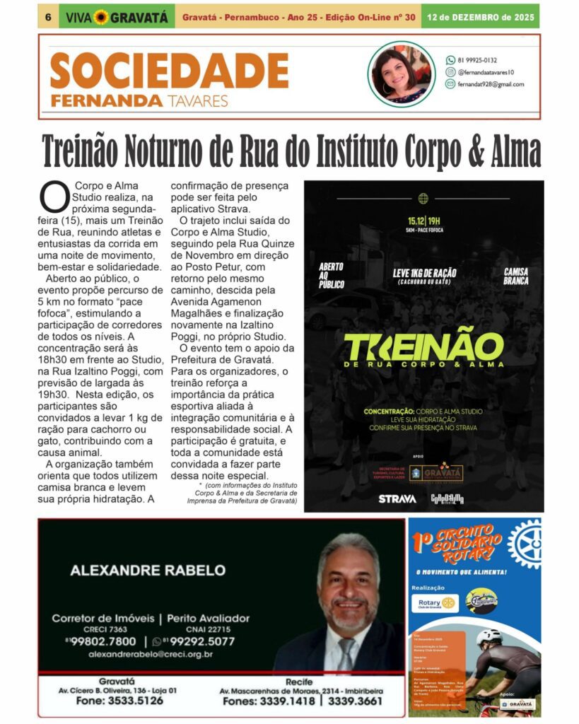 Sem categoria Viva Gravata 13 de dezembro de 2025 0 Comentários Nossa coluna semanal desta sexta-feira Ver essa foto no Instagram Uma publicação compartilhada por VIVA GRAVATÁ (@jornalvivagravata)