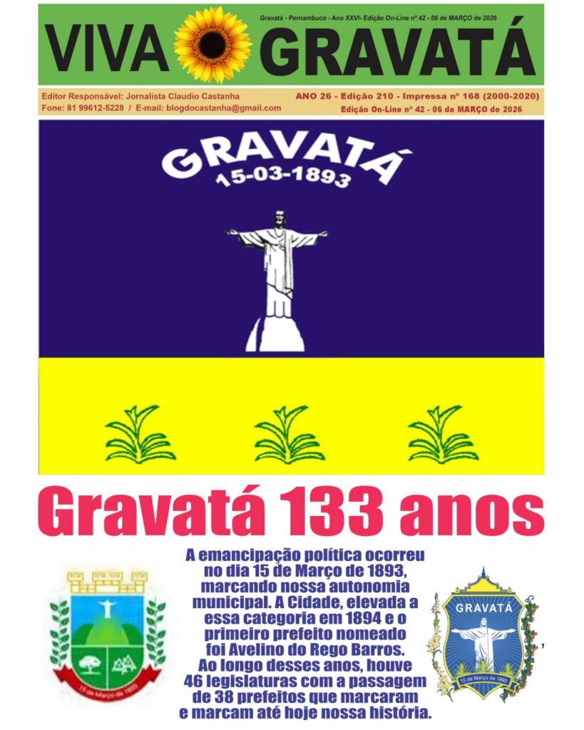 Sem categoria Viva Gravata 14 de março de 2026 0 Comentários CAPA edição especial de aniversário do Jornal Viva Gravatá Ver essa foto no Instagram Uma publicação compartilhada por VIVA GRAVATÁ (@jornalvivagravata)