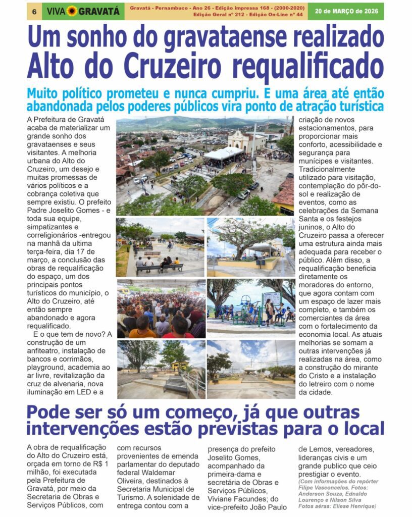 Sem categoria Viva Gravata 24 de março de 2026 0 Comentários Destaque de Capa do Jornal VG Digital: Alto do Cruzeiro de cara nova Ver essa foto no Instagram Uma publicação compartilhada por VIVA GRAVATÁ (@jornalvivagravata)